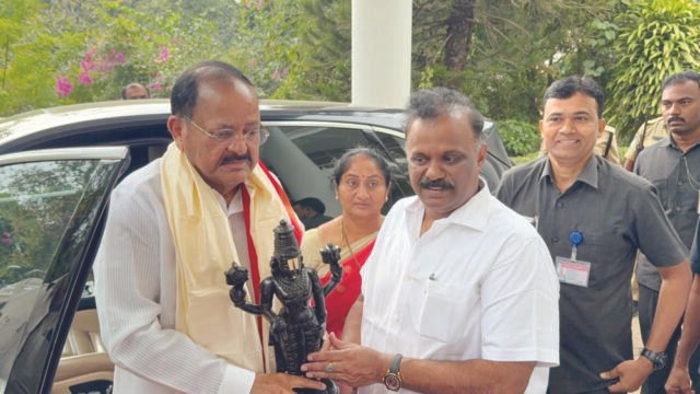 పుట్టపర్తి (Puttaparti) : మాజీ ఉపరాష్ట్రపతి వెంకయ్యనాయుడుకు రాష్ట్ర రెవెన్యూ శాఖ, జిల్లా ఇన్చార్జి మంత్రి అనగాని సత్యప్రసాద్, బీసీ సంక్షేమ శాఖ మంత్రి, వైద్య ఆరోగ్య శాఖ, కలెక్టర్ ఎ శ్యాంప్రసాద్, ఎమ్మెల్యేలు, బిజెపి నాయకులు, సత్య సాయి మేనేజింగ్ ట్రస్ట్రీ, ఇతర ఉన్నతాధికారులు ఘనంగా ఆత్మీయ స్వాగతం పలికారు. ప్రతి ఒక్కరిని పేరుపేరునా ఆత్మీయంగా వెంకయ్య నాయుడు పలకరించారు.
