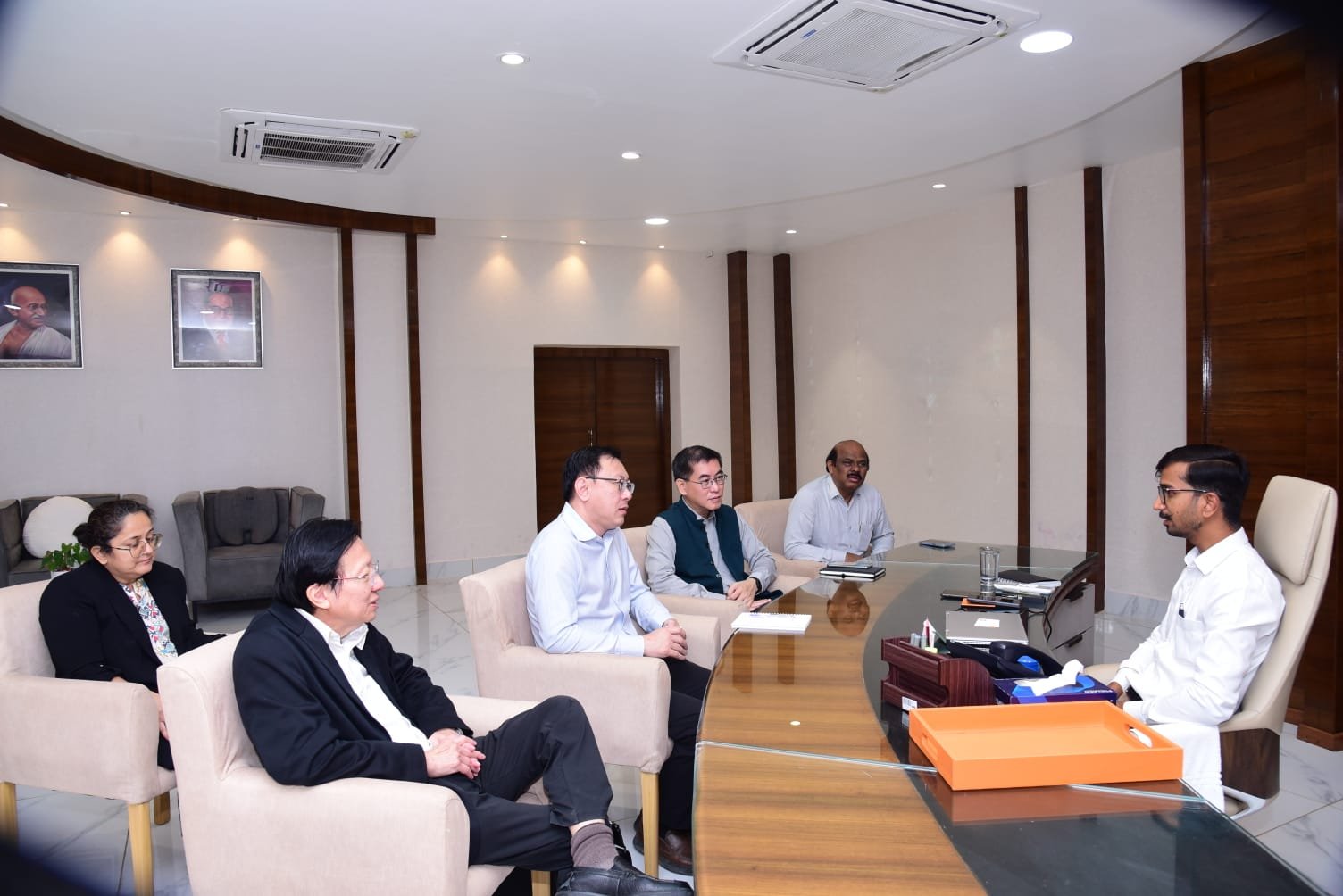 బాపట్ల (Bapatla) : కలెక్టర్ కార్యాలయంలో సింగపూర్ (Singapore) బృందంతో కలెక్టర్ డాక్టర్ వి వినోద్ కుమార్ (Vinod Kumar IAS) మంగళవారం సమావేశం అయ్యారు. జిల్లా భౌగోళిక అంశాలను సింగపూర్ ప్రతినిధులకు వివరించారు. బాపట్ల జిల్లాకు ఉన్న అపారమైన భూ వనరులు, తీరప్రాంతం పరిశ్రమల స్థాపనకు అత్యంత అనుకూలమని చెప్పారు. సింగపూర్ సంస్థలు ఇక్కడ పెట్టుబడులు పెడితే ప్రభుత్వం తరపున పూర్తి సహకారం అందిస్తామని చెప్పారు.