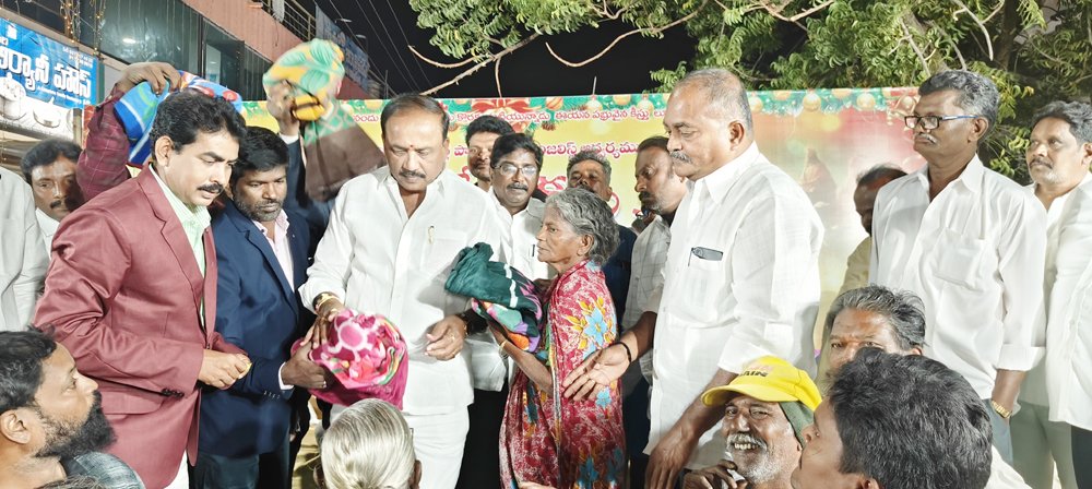 చీరాల (Chirala) : ఐక్య క్రిస్మస్ వేడుకల సందర్భంగా ఎమ్మెల్యే ఎంఎం కొండయ్య (MLA Kondaiah) పేదలకు దుప్పట్లు పంపిణీ చేశారు. స్థానిక గడియార స్తంభం సెంటర్లో పాస్టర్స్ అసోసియేషన్, ఇవాంజలిస్ట్ల ఆధ్వర్యంలో సెమీ క్రిస్మస్ వేడుకలు ఘనంగా నిర్వహించారు. కేక్ కట్ చేసి క్రిస్మస్ (Xmas) శుభాకాంక్షలు తెలిపారు. గత 25ఏళ్లుగా నిర్లక్ష్యానికి గురైన ఆటోనగర్ ప్రస్తుతం అభివృద్ధి చేస్తున్నామని చెప్పారు. చేనేత టెక్స్టైల్ పార్క్ అభివృద్ధి జరుగుతోందన్నారు. వెనుకబడిన తరగతులన్నీ అభివృద్ధి చెందేలా కూటమి ప్రభుత్వం కృషి చేస్తోందన్నారు. అనంతరం ఎమ్మెల్యే కొండయ్యను పాస్టర్లు సన్మానించారు. కార్యక్రమంలో రాజా సిల్వన్, పి ఎలీషారెడ్డి, రత్నరాజు, గారపాటి పుష్పరాజ్, దేవరపల్లి రంగారావు, టీడీపీ పట్టణ అధ్యక్షులు దోగుపర్తి వెంకట సురేష్, కౌన్సిలర్ సలూరి సత్యానందం, డేటా నాగేశ్వరావు, డానియేలు ప్రసాద్ పాల్గొన్నారు.
