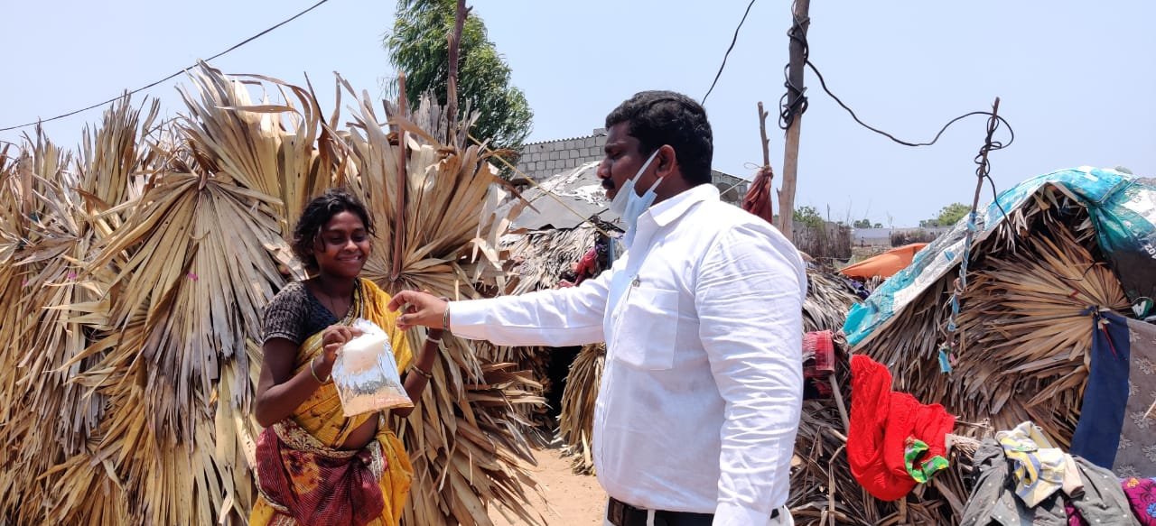 చీరాల : కరోనా లాక్ డౌన్ కాలంలో పనుల్లేక, రోజు గడవక ఇబ్బందులు పడుతున్న పేదల ఆకలి తీరిచేందుకు దాతలు ముందుకు రావాలని కామాక్షి కేర్ హాస్పిటల్ ఎండి తాడివలస దేవరాజు కోరారు. పేదల ఆకలి తీర్చే ఉద్దేశ్యంతో రోటరీ క్లబ్ క్షీరపురి ఆధ్వర్యంలో అడ్డగడ్డ మల్లికార్జున్, ఐరన్ అండ్ హార్డ్ వేర్ అసోసియేషన్ సహకారంతో వేటపాలెం మండలం కటరిపాలెం యనది కాలనీ, వేటపాలెం కాలవకట్ట దగ్గర ఉన్నటువంటి 350నిరుపేదలకు టమోటో రైస్ పాకెట్స్, పెరుగు అన్నం పంపిణీ చేశారు. కార్యక్రమంలో రోటరీ క్లబ్ ఆఫ్ క్షిరపురి వ్యవస్థాపక అధ్యక్షులు అడ్డగడ్డ మల్లికార్జున్, శ్రీ కామాక్షి కేర్ హాస్పిటల్ సిబ్బంది నరేంద్ర, మురళి, వంశీ పాల్గొన్నారు.