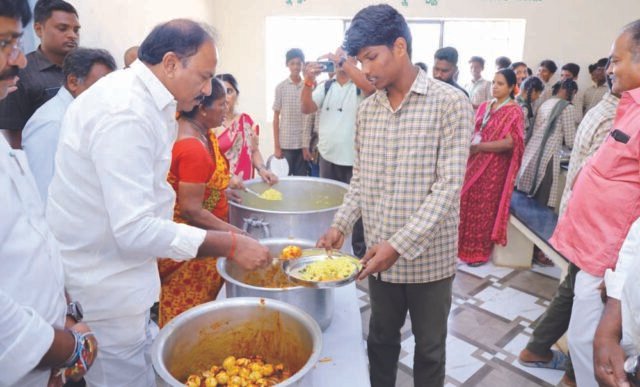 చీరాల (DN5 News) : స్థానిక ఎన్ఆర్ అండ్ పిఎం బాలుర ఉన్నత పాఠశాలలో మధ్యాహ్నం భోజన పధకం అమలు తీరును శాసన సభ్యులు ఎంఎం కొండయ్య మంగళవారం ఆకస్మికంగా పరిశీలించారు. ఆహార పదార్థాల నాణ్యత చూశారు. విద్యార్ధినీ, విద్యార్థులతో విడి విడిగా మాట్లాడారు. వంట గదులు, భోజన హాలు పరిశీలించారు. విద్యార్ధులతో కలిసి భోజనం చేసి స్వయంగా నాణ్యత తెలుసుకున్నారు. భోజనం మెనూ, రుచి, నాణ్యతగా ఉందని పేర్కొన్నారు. ఈ సందర్భంగా హెడ్మాస్టర్ సాల్మన్ రాజు, ఉపాధ్యాయులను అభినందించారు. ఆయన వెంట మున్సిపల్ ఛైర్మన్ మించాల సాంబశివరావు, ఎఎంసి ఛైర్మన్ కౌతరపు జనార్ధనరావు, ఇతర నాయకులు ఉన్నారు.