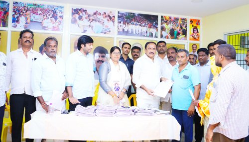 చీరాల : శాసన సభ్యులు ఎంఎం కొండయ్య తన క్యాంపు కార్యాలయంలో శుక్రవారం ప్రజా దర్బార్ నిర్వహించారు. ఆయన ప్రజలను నేరుగా కలుసుకుని సమస్యలు తెలుసుకుని వాటి పరిష్కారానికి నిరంతరం కృషి చేస్తానని అన్నారు. ప్రజా దర్బార్ ద్వారా ప్రతి ఒక్కరి సమస్య పరిష్కరించే దిశగా పని చేస్తామని అన్నారు. బాధితుల సమస్యలను త్వరితగతిన పరిష్కరించే విధంగా అధికారులు పని చేయాలని సూచించారు. నియోజకవర్గ ప్రజల నుండి స్వయంగా ఫిర్యాదులు స్వీకరించారు. నియోజకవర్గంలోని అన్ని గ్రామాల అభివృద్దే లక్ష్యంగా పని చేస్తామని అన్నారు. ఈ సందర్భంగా 750 మంది వివిధ సమస్యలపై వినతులు అందజేశారు. వీటిలో పెన్షన్ కోసం 100 అర్జీలు, ఇళ్ల స్థలాలు కోరుతూ 630 అర్జీలు, ఇతర సమస్యలపై 20 అర్జీలు ఇచ్చారు. కార్యక్రమంలో తెలుగుదేశం యువ నాయకులు మద్దులూరి గౌరీ అమర్నాథ్, తెలుగుదేశం, జనసేన, బిజెపి నాయకులు పాల్గొన్నారు.