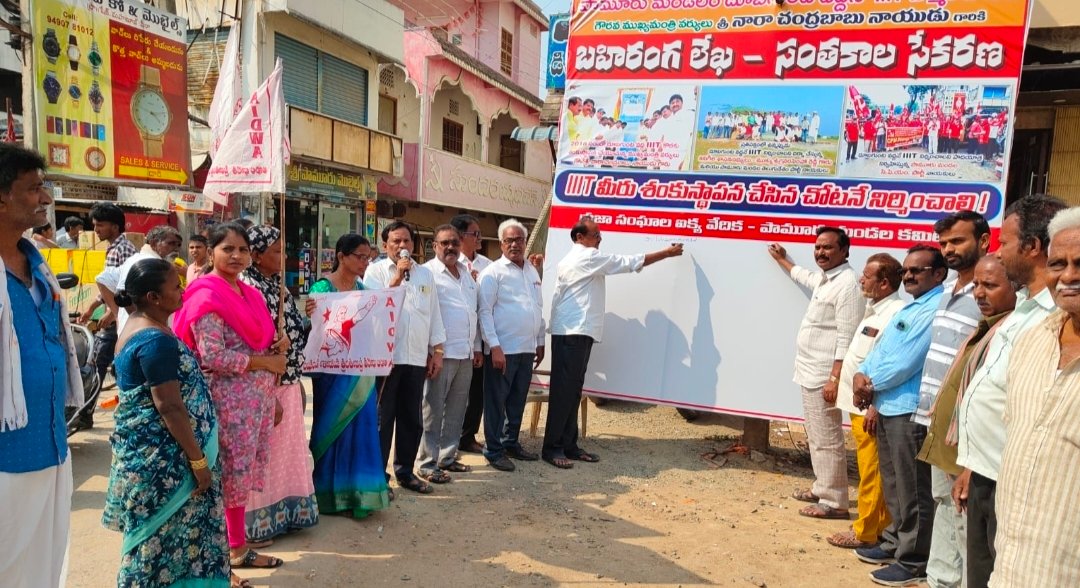 ప్రస్తుతం చంద్రబాబు ప్రభుత్వం అధికారంలోకి వచ్చిన పట్టుదలతో తిరిగి దూబగుంటలోనే ఐఐఐటి కాలేజీ నిర్మాణం చేపట్టాల్సింది పోయి వైసీపీ ప్రకటించిన ప్రాంతంలో నిర్మాణం చేపడతామని ప్రచారం చేసుకోవడం ప్రజలను మోసం చేసినట్లు అవుతుందని అన్నారు. దూబగుంటలో కాలేజీ రాకపోతే రాజకీయానికి దూరంగా ఉంటానని సవాలు విసిరిన మాటలు గుర్తుకు రాలేదని ఆరోపించారు. కనిగిరి శాసన సభ్యులు డాక్టర్ ముక్కు ఉగ్ర నరసింహరెడ్డి గత ఎన్నికల్లో ప్రజలకు ఇచ్చిన హామీలు నిలుపుకోవాలని కోరారు. రేపటి నుండి ప్రతి గ్రామంలో సంతకాలు సేకరించి సిఎం చంద్రబాబుకు, విద్యా శాఖ మంత్రి నారా లోకేష్కు పంపనున్నట్లు తెలిపారు. కార్యక్రమంలో ప్రజా సంఘాల నాయకులు, షేక్ ఖాదర్ భాషా, కె మాల్యాద్రి, యాట వీరనారాయణ, సిహెచ్ వెంకటేశ్వర్లు, శ్రీనివాసులు, పిచ్చిరెడ్డి, కె శంకర్, ఐద్వా నాయకులు సయ్యద్ షమీ, కె ధనలక్ష్మి, సయ్యద్ రమీజా పాల్గొన్నారు.