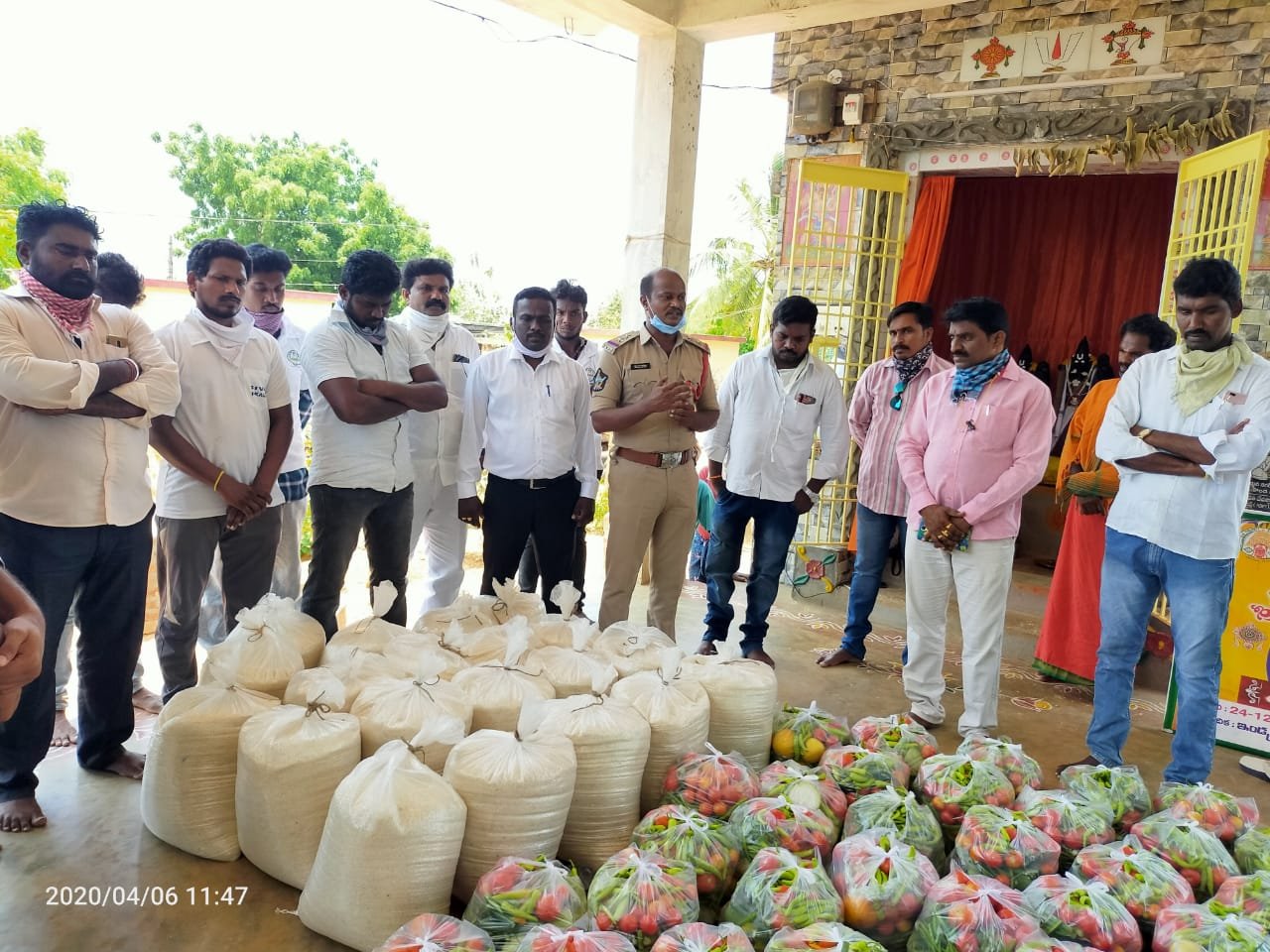 ప్రకాశంజిల్లా శింగరాయకొండ మండలం పాతసింగరాయకొండ పంచాయతీలోని మల్లికార్జున నగర్, నరశింహనగర్, బాలిరెడ్డినగర్ నందు రేషన్ కార్డులు లేని 50కుటుంబాలకు, సోమరాజుపల్లిలోని తుఫాన్ షెల్టర్ సమీప గిరిజనకాలనీలలోని రేషన్ కార్డులు లేని కుటుంబాలకు ఒక్కొక్క కుటుంబానికి 10కేజీల బియ్యం, 5కేజీల కూరగాయలు లోటస్ విద్యా సంస్థల అధినేత నక్కా శ్రీనివాసులు ఆర్ధిక సహకారంతో ప్రధానోపాధ్యాయులు అర్రిబోయిన రాంబాబు, మసనం జాలరత్నం, అయ్యప్ప నగర్ యూత్ ఆధ్వర్యంలో సింగరాయకొండ సబ్ ఇన్స్పెక్టర్ మేడా శ్రీనివాసులు చేతులమీదుగా సరఫరా చేశారు. ఈ సందర్భంగా యువనేస్తం ఫౌండేషన్ సభ్యులు అన్నదానం నిర్వహించారు. కార్యక్రమంలో ఫ్రెండ్స్ చిల్డ్రన్ హోం ప్రతినిధి పంతగాని వెంకటేశ్వర్లు, యువనేస్తం అధ్యక్షులు అంకిపల్లి బంగారు బాబు, గ్రామ వాలంటీర్లు నక్కా ప్రసన్నాంజనేయులు, మసనం శివ, పెల్లేటి సురేష్, మసనం శివక్రిష్ణ, పసుపులేటి అనూష, అయ్యప్ప నగర్ యువత, బంగారు బాబు యువత పాల్గొన్నారు.