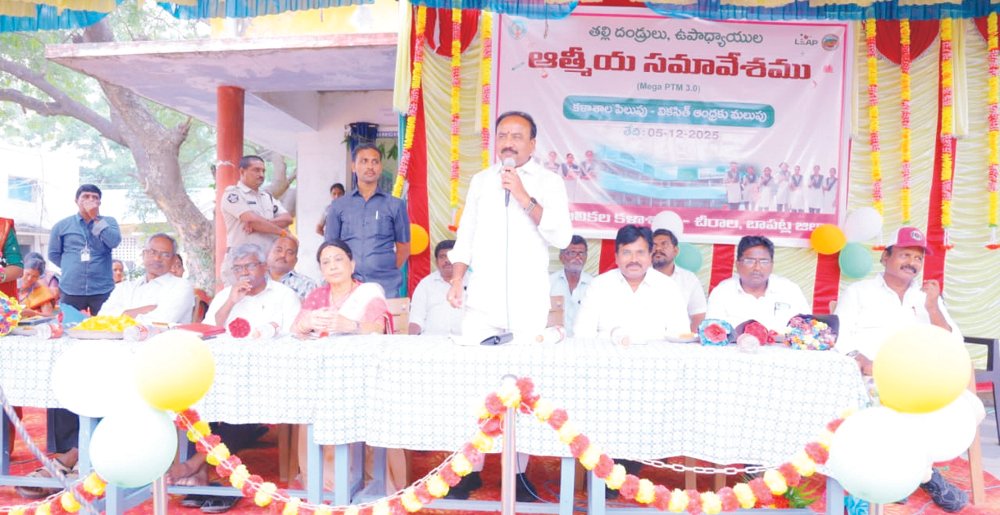 విద్యార్థుల సమస్యలు పరిష్కరించేందుకు, విద్యార్ధుల భవిష్యత్తుకు ప్రభుత్వం సమగ్ర చర్యలు తీసుకుంటోందని అన్నారు. ‘చేయి చేయి కలుపుదాం, పిల్లల బంగారు భవిష్యత్తుకు బాటలు వేద్దాం, భావి భారతాన్ని నిర్మిద్దాం’ అని అన్నారు. కార్యక్రమంలో ఎఎంసి చైర్మన్ కౌతరపు జనార్ధనరావు, ఆప్కో చైర్మన్ డాక్టర్ సజ్జ హేమలత, మున్సిపల్ ఛైర్మన్ మీంచాల సాంబశివరావు, కూటమి నాయకులు వివిధ హోదాల్లో ఉన్న నాయకులు, అధికారులు పాల్గొన్నారు.