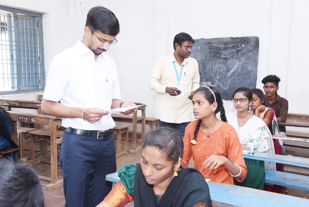 పరీక్షల నిర్వహణలో ఎలాంటి సమస్యలు లేకుండా చూసుకోవాలని అన్నారు. పరీక్షా కేంద్రాలలో కనీస సౌకర్యాలు ఏర్పాటు చేయాలని అన్నారు. ప్రైవేట్ కళాశాలకు 67 మందిని కేటాయించగా, 64 మంది విద్యార్థులు హాజరయ్యారని, మిగిలిన ముగ్గురు గైర్హాజరైనట్లు పరీక్ష కేంద్రం చీఫ్ సూపరింటెండెంట్ లక్ష్మీతిరుపతమ్మ ఆయన దృష్టికి తెచ్చారు. ప్రభుత్వ కళాశాలకు 44 మందిని కేటాయించగా అందరూ హాజరయ్యారని చీఫ్ సూపరింటెండెంట్ వి భారతి వివరించారు. ఆయా కేంద్రంలో సౌకర్యాలు పరిశీలించారు. పరీక్షా కేంద్రం నిర్వహణ, పర్యవేక్షణ, పోలీసు బందోబస్తు పరిశీలించారు.