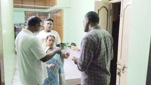 చీరాల (Chirala) : పట్టణంలో చోరీ ఘటన కలకలం రేపింది. మంగళవారం అర్థ రాత్రి పువ్వాడవారి వీధిలో అసోసియేషన్ బిల్డింగ్ సమీపంలో నివాసం ఉంటున్న ప్రవేటు కళాశాల కరస్పాండెంట్ మువ్వల ప్రసాదరావు ఇంటిలో చోరీ జరిగింది. దంపతులు ఉడ్ నగర్ లోని రమేష్ హాస్పటల్ కు (Ramesh Hospital) అనారోగ్య నిమిత్తం వైద్యం కోసం వెళ్ళి వచ్చేలోపు దుండగులు ఇంట్లోని వెనుక తలుపు నుంచి లోపలికి వెళ్లి చోరీకి పాల్పడ్డారు. కబోర్డులో దాచిన 117 సవర్లు బంగారు ఆభరణాలు, రూ.1.60 లక్షల నగదు అపహరించారు. దుండగులు చోరీ చేసిన చోట ఎలాంటి ఆనవాలు లభించకుండా ఉండేందుకు సినీపక్కీలో కారం చల్లి వెళ్ళిపోయారు. జరిగిన ఘటనపై బాధితులు ఇచ్చిన పిర్యాదు మేరకు పోలీసులు బుధవారం క్లూస్ టీంను రంగంలోకి దించారు. ఒకటో పట్టణ ఎస్ఐ రాజ్యలక్ష్మి కేసు నమోదు చేసి దర్యాప్తు చేస్తున్నారు. హాస్పటల్కు వెళ్లి వచ్చే గంట వ్యవధిలో చోరీ జరగటం ఆపై ఆ ప్రాంత వాసులు ఆందోళన వ్యక్తం చేస్తున్నారు. చోరీ ఘటన వద్ద కారంపొడి చల్లటంతో తెలిసిన వారి పనేననే కోణంలో విచారణ చేశారు. ముద్దాయిలను గంటల వ్యవదిలో పట్టుకుని నగదు, బంగారం పోలీసులు (Police) స్వాదీనం చేసుకున్నట్లు తెలుసుకున్న ఆ ప్రాంత ప్రజలు సంతోషం వ్యక్తం చేస్తున్నారు. పూర్తి వివరాలు పోలీసుల దర్యాప్తులో తెలియాల్సి ఉంది.