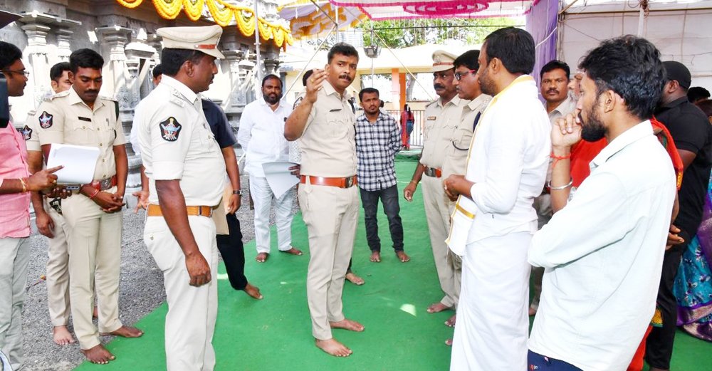 తిరునాళ్లలో అనుమానాస్పద వ్యక్తులను గుర్తించి తనిఖీ చేయడానికి 11 ఫింగర్ ప్రింట్ పరికరాలు ఏర్పాటు చేసినట్లు తెలిపారు. జాతీయ రహదారిపై ట్రాఫిక్ పరిశీలించేందుకు మరో 5 డ్రోన్ కెమెరాలు ఏర్పాటు చేశారు. ఆలయ పరిసర ప్రాంతాలు పూర్తిస్థాయిలో పరిశీలించారు. బందోబస్తు నిర్వహణపై సిబ్బందికి సూచనలు చేశారు. రథోత్సవం సందర్భంగా తోక్కిసలాట జరగకుండా జాగ్రత్తలు తీసుకోవాలని సూచనలు ఇచ్చారు. దేవాలయంలోని క్యూ లైన్ను పరిశీలించి, ఏర్పాట్లు ఎలా ఉన్నాయో భక్తులను అడిగి తెలుసుకున్నారు. క్యూ లైన్లో భక్తులు దర్శనానికి వచ్చే విధానం, వెళ్లే విధానంపై పోలీసు సిబ్బందికి సూచనలు చేశారు. ప్రభల ఏర్పాటు జరుగుతున్న పార్కింగ్ ప్రదేశాలు పరిశీలించారు. అక్కడ ఎలాంటి అవాంఛనీయ సంఘటనలు జరగకుండా చర్యలు తీసుకోవాలని చెప్పారు.
