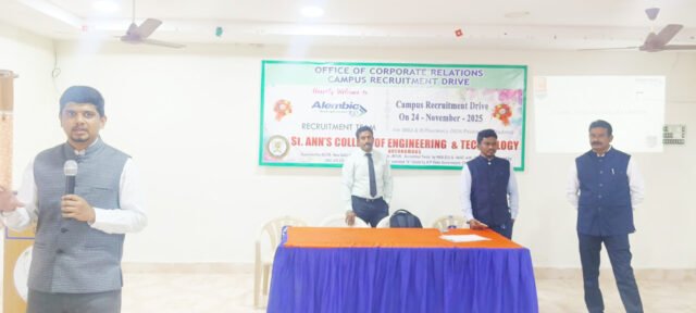 వేటపాలెం (Vetapalem) : స్థానిక సెయింట్ ఆన్స్ ఇంజినీరింగ్ కాలేజీలో ముంబాయి ప్రధాన కేంద్రం కలిగిన అలింబిక్ ఫార్మసూటికల్స్ లిమిటెడ్ ఎంబిఎ, ఫార్మసి విద్యార్ధులకు ప్రాంగణ ఎంపికలు నిర్వహించినట్లు కళాశాల సెక్రటరి వనమా రామకృష్ణారావు, కరస్పాండెంట్ శ్రీమంతుల లక్ష్మణరావు తెలిపారు. అలింబిక్ ఫార్మసూటికల్స్ లిమిటెడ్ 1907లో స్ధాపించిన బహుళజాతి కంపెనీ అన్నారు.